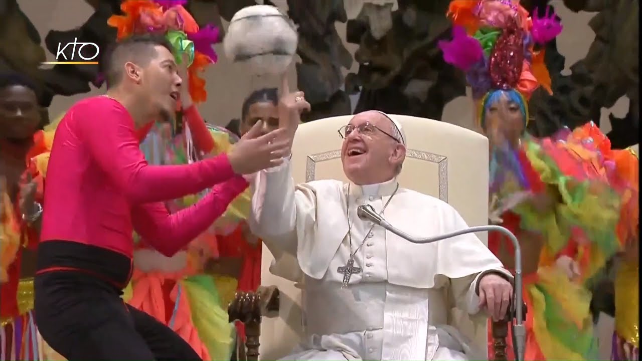 Pour sa première audience générale de l´année 2019, le Pape François a repris ce matin son cycle de catéchèses sur le Notre Père en évoquant le contexte de l´enseignement de cette prière par Jésus, lors du Discours sur la Montagne, qui correspond également au lieu d´évocation des Béatitudes. Un contexte qui donne donc une indication sur l´état d´esprit à cultiver lorsque l´on veut s´adresser à Dieu. Le Pape a pu apprécier le spectacle offert par des artistes de cirque venus de Cuba, qui se produisent actuellement à Rome. Il s'est lui même livré a un exercice de jonglerie !